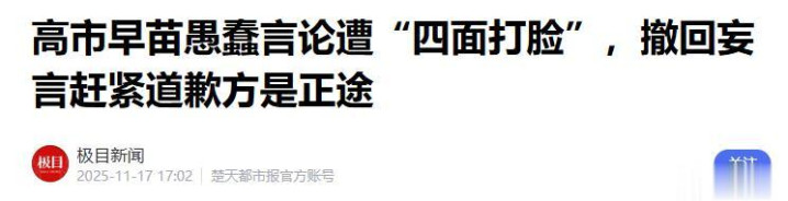 极目新闻——高市早苗愚蠢言论遭“四面打脸”,撤回妄言赶紧道歉方是正途